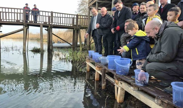 DÜZCE (İHA) – Dünya Sulak Alanlar Günü'nde düzenlenen programda yetiştirilen yavru sazan balıkları, şehrin tarihi gölü Efteni ile buluştu. Vali Selçuk Aslan ve protokol üyelerinin de katıldığı programda Efteni Gölü iskele ve kuş gözlem kulesi açılışı da gerçekleştirildi.