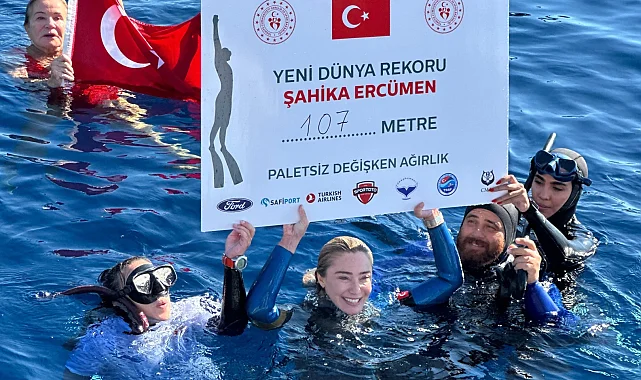 Milli dalışçı Şahika Ercümen, 17 Ekim 2025'te Antalya Kaş'ta gerçekleşen dalışta paletsiz kategoride 107 metreye ulaşarak dünya rekoru kırdı. Bu başarısını Gazze'ye ithaf eden Ercümen, Cumhuriyet'in 102. yılına özel mesajlar da verdi.