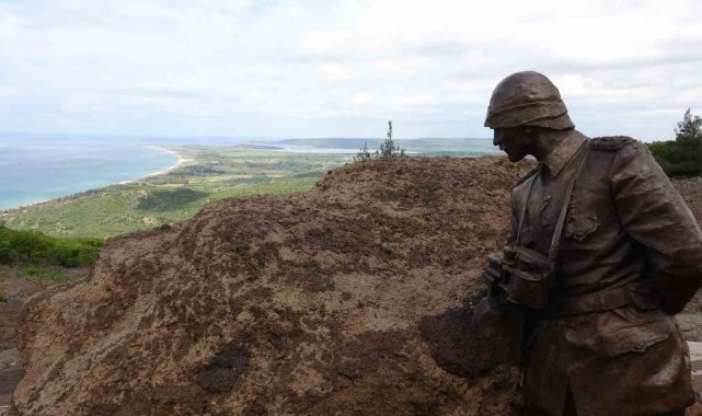 Çanakkale Kara Muharebeleri sırasında Mustafa Kemal Atatürk'ün 17 Haziran 1915 tarihinde Binbaşı Haydar Mehmet Alganer tarafından cephede çekilen fotoğrafının bulunduğu bölge Atatürk Anıtı ile tarihe tanıklı ediyor. ÇOMÜ Tarih Bölümü Öğretim Üyesi Doç. Dr. Barış Borlat, "Mustafa Kemal'in Çanakkale Kara Harbi esnasında kullandığı iki tane kritik karargahının tam ortasında tarihin belki de zamanı durdurulduğu o anın şahitliği içerisindeki tam da heykelin bulunduğu fotoğrafın çekildiği yerdeyiz" dedi.Tarihin en kanlı muharebelerinden birine sahne olan ve dünya harp tarihine geçen 'Çanakkale Geçilmez' destanının yazıldığı Çanakkale Savaşları'nın yaşandığı Tarihi Gelibolu Yarımadasındaki Şehitler Abidesi, Seyit Onbaşı Heykeli, 57'nci Piyade Alayı Şehitliği, Conkbayırı, Çanakkale Destanı Tanıtım Merkezi, Kilitbahir Kalesi, Bigalı Kalesi ve Seddülbahir Kalesiyle her yıl binlerce ziyaretçiye Çanakkale Ruhu'nu yaşatmaya devam ediyor. Adım atılan her noktasında Çanakkale Savaşları'nın izlerinin görülmesi mümkün olan, açık hava müzesi niteliği taşıyan Tarihi Gelibolu Yarımadası'nda, Çanakkale Savaşları Gelibolu Tarihi Alan Başkanlığı hayata geçirdiği ve geçireceği yeni projelerle, Çanakkale Ruhu'nu ve Çanakkale Destanı'nı daha fazla kişiye ulaştırmayı hedefliyor. Bu çerçevede Tarihi Alan Başkanlığı tarafından Mustafa Kemal Atatürk'ün Çanakkale Muharebelerindeki rolünün anlatılması için 'Mustafa Kemal Yolu' projesi hayata geçirildi.109 yıl sonra o tarihi fotoğrafın çekildiği noktaya Atatürk Anıtı yapıldıÇanakkale Savaşları'nda Gelibolu'da düşman askerini durdurarak Anafartalar Kahramanı olan Mustafa Kemal Atatürk'ün, Binbaşı Haydar Mehmet Alganer tarafından 17 Haziran 1915 tarihinde 18'nci Alay'ın siperlerine girmeden önce çekilen o tarihi fotoğrafın bulunduğu noktaya 109 yıl sonra Çanakkale Savaşları Gelibolu Tarihi Alan Başkanlığı tarafından Mustafa Kemal Yolu projesi kapsamında Atatürk Anıtı yapıldı. Atatürk'ün cephedeki orijinal fotoğrafı ile fotoğrafı çeken fotoğraf makinesi Alganer'in torunları tarafından 2007 yılında Çanakkale Deniz Müzesi Komutanlığına hediye edildi. Fotoğraf ve fotoğraf makinesi, müzenin en nadide parçaları arasında bulunuyor.'Mustafa Kemal Yolu' projesiyle, Atatürk'ün Çanakkale Muharebelerindeki rolü anlatılıyorÇanakkale Savaşları'nın yaşandığı Tarihi Gelibolu Yarımadasındaki Eceabat ilçesine bağlı Bigalı köyü yakınlarında tespit edilen Mustafa Kemal Atatürk'ün Çanakkale Savaşları'ndaki ilk karargâhı 'Mustafa Kemal Yolu' projesi, Çanakkale Savaşları Gelibolu Tarihi Alan Başkanlığının çalışmasıyla ihya edildi. Mustafa Kemal Yolu' projesiyle, Atatürk'ün Çanakkale Kara Muharebelerindeki rolünün anlatılması, savaş alanlarının kapalı alanlardan çıkarılarak ziyaretçilere açılması, tarihi veriler doğrultusunda Mustafa Kemal Atatürk'ün, Çanakkale'ye intikalinden başlanarak kara muharebelerinde kullandığı yolda, ziyaret rotaları oluşturularak Tarihi Alanı'nın açık hava müzesine dönüştürülmesi hedefleniyor.'Mustafa Kemal Yolu', Mustafa Kemal Atatürk'ün Çanakkale'ye ilk adım attığı 25 Şubat 1915 tarihinden 18 Mart Zaferine dek 289 gün boyunca cephe ve karargah alanları dahil tüm hareket alanını kapsıyor. Atatürk'ün 25 Şubat 1915 tarihinde Çanakkale'ye gelip, 19. Tümen Karargahı'nı Maydos'ta kurmasıyla başlayan ve Bigalı, Kemalyeri, 180 Rakımlı Tepenin Güneyi, Düztepe'nin Güneyi ile Çamlıtekke'de kurmuş olduğu karargahları izleyen rotayı canlandırmalar aracılığı ile deneyimleme fırsatını ziyaretçiye sunan proje, Mustafa Kemal'in Çanakkale savaşlarındaki rolünü anlatarak, kara savaşlarının önemine dikkat çekiyor. Mustafa Kemal Yolu'nda çocuklar için özel alanlar tasarlanırken, konaklamalı turlar içinde kamp alanları oluşturdu. 17 kilometrelik yol ziyarete açıldı.Tarihin belki de zamanı durdurulduğu o anın şahitliği içerisindeki tam da heykelin bulunduğu fotoğrafın çekildiği yerdeyizÇOMÜ Tarih Bölümü Öğretim Üyesi Doç. Dr. Barış Borlat, "Çanakkale Muharebeleri esnasında Mustafa Kemal Atatürk'ün çekildiği fotoğraflar içerisinde hikayesini bildiğimiz neredeyse nadir fotoğraflardan bir tanesinin heykel olarak şu anda yarımada içerisindeki sergilenmiş olduğu alanlardan bir tanesindeyiz. Tarih 17 Haziran 1915 günü, saat dört ve Mustafa Kemal Atatürk bulunmuş olduğu karargahın içerisinde silah arkadaşı Binbaşı Haydar Mehmet Alganer'i misafir ediyor. Alganer, siperin içerisine geçmeden önce karargahtaki bu misafirlik esnasındaki durumunu hatıralarında anlatıyor. İçeri geldiğinde Mustafa Kemal Kemal'in karargahının aslında neredeyse bir eve benzediğini, içerisinde bir köpeğinin, kuzusunun olduğunu anlatıyor. Bir süre sonra iki silah arkadaşı siperleri gezmek amacıyla çıkıyor. Bu esnada özellikle şu anda bulunmuş olduğumuz mevkie doğru ilerlerken Alganer diyor ki; ilk sipere girdiğimizde askerlerin bir kısmının Kur'an-ı Kerim okuduğunu, bazılarının dua ettiğini, namaz kıldıklarını gördüm. Ardından Mustafa Kemal'le birlikte siperleri gezmeye başladık. İşte bu gezi esnasında kendisi bir süre sonra gideceği bölgeyle ilgili bir tarifte bulunuyor ve diyor ki sırasıyla 18. Alay, 27. Alay siperlerini ziyaret edecektik ve bu esnada görev yapacağım Anafarta ovasını da görüyordum. Hatta Mahmuz Sırt üzerinde düşman da görünüyordu. İşte tarihi kaynaklarda Alganer'in bahsetmiş olduğu bu tarif esnasındaki bütün tanımlara uyan tek noktaysa şu anda bulunmuş olduğumuz bölge. Mustafa Kemal'in Çanakkale Muharebeleri esnasındaki çekilmiş olduğu fotoğrafın tam da çekildiği yerdeyiz. Hatta Alganer hatıralarında iki fotoğraf çek