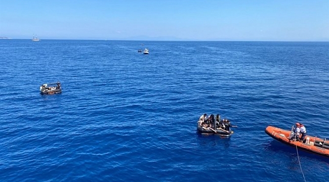 Aydın'ın Kuşadası ilçesi açıklarında, Yunan unsurları tarafından can salları ile Türk kara sularına geri itilen 114 göçmen kurtarıldı.