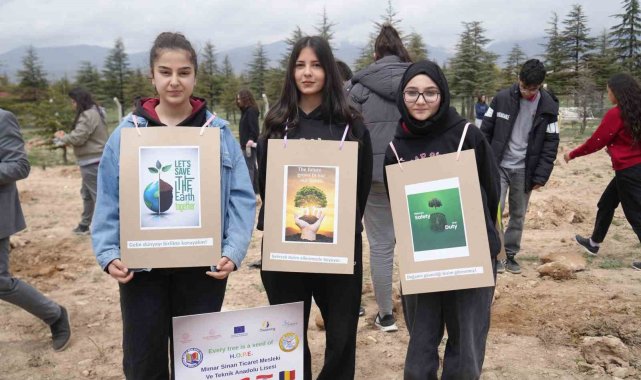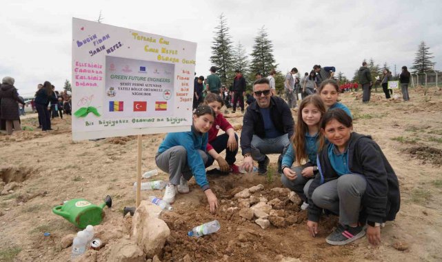 Niğde'de; İl Milli Eğitim Müdürlüğü koordinasyonunda yürütülen eTwinning projesi kapsamında hatıra ormanı oluşturuldu.