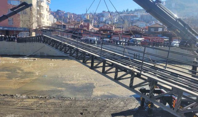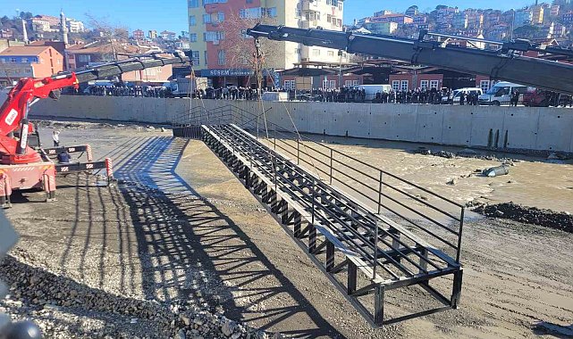 2,5 yıl önce sel sularına kapılmıştı, ilçeyi birbirine bağlayan üst geçit yeniden yerine konuldu