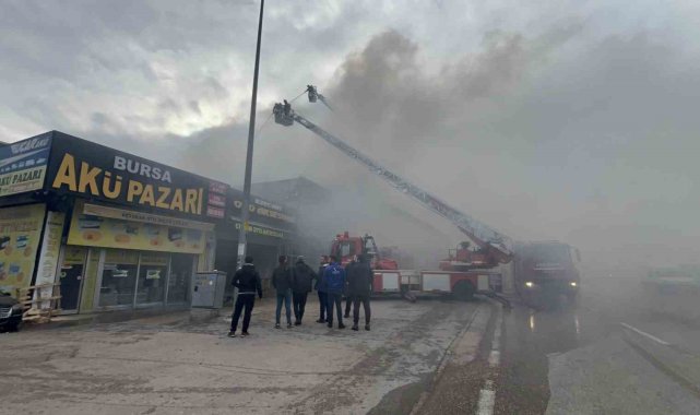 Bursa'da oto aksesuar işletmesinde çıkan yangın başka bitişindeki iş yerine sıçradı. Yaklaşık 1 saat süren müdahale sonrası alevler kontrol altına alınırken, söndürme çalışmaları devam ediyor.