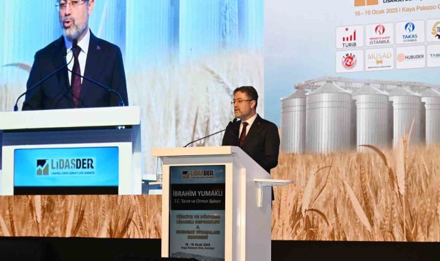 Antalya'da Türkiye ve Dünyada Lisanslı Depoculuk ve Hububat Piyasaları Kongresi'ne katılan Tarım ve Orman Bakanı İbrahim Yumaklı, "2024'te 39 milyon ton tahıl ürettik, un ihracatında dünya 1'incisi, makarna ihracatında ise 2'ncisiyiz. Üretim planlamasını 3'er yıllık yapıyoruz. 3 yılın sonunda 2028'de hububat üretimimizde yüzde 13'lük artış sağlamayı hedefliyoruz" ifadelerini kullandı.