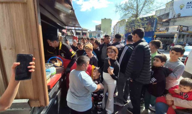 Tekirdağ'ın Süleymanpaşa ilçesinde 23 Nisan Ulusal Egemenlik ve Çocuk Bayramı'nda çocuklara ücretsiz kokoreç dağıtılması üzerine işletme önünde yoğunluk oluştu.Süleymanpaşa'da kokoreç işletmeciliği yapan Efkan Kılıç, 23 Nisan dolayısıyla çocuklara ücretsiz ikramda bulundu. Kokoreç, köfte ekmek ve sucuk dağıtımının yapıldığı etkinlikte, dükkân önünde adım atacak yer kalmazken uzun kuyruklar oluştu. Çocukların yoğun ilgi gösterdiği etkinlikte zaman zaman izdiham yaşandı.Gün boyunca süren ikramda toplam 1920 kokorecin dağıtıldığı öğrenilirken, kokorecin kısa sürede tükendiği, ardından köfte ve sucuk ikramına devam edildiği belirtildi.İşletmeci Efkan Kılıç yaptığı açıklamada, "Bugün 23 Nisan ulusal egemenlik ve çocuk bayramı. Ben de esnaf olarak kardeşlerimize, çocuklarımıza bugün kokoreç, köfte ekmek sucuk ikram ettim. Çocuklarımız bizim geleceğimizin teminatı. Onları çok seviyorum. Bugüne özel 1920 kokoreç, köfte, sucuk, ekmek dağıttım. Çocuklar bizim geleceğimizin teminat. Saat 12.00'dan beri durmuyoruz. Kokoreç bitti. Şu an köfte ve sucuktayım. Çok güzel bir talep çok güzel gidiyor. Allah hepinizden razı olsun. Ayağınıza sağlık hepinize" dedi.Etkinlik, hem çocuklar hem de aileleri için bayram gününe renkli görüntüler katarken, işletme önündeki yoğunluk gün boyu devam etti.