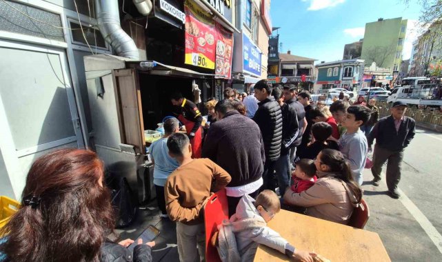 Tekirdağ'ın Süleymanpaşa ilçesinde 23 Nisan Ulusal Egemenlik ve Çocuk Bayramı'nda çocuklara ücretsiz kokoreç dağıtılması üzerine işletme önünde yoğunluk oluştu.