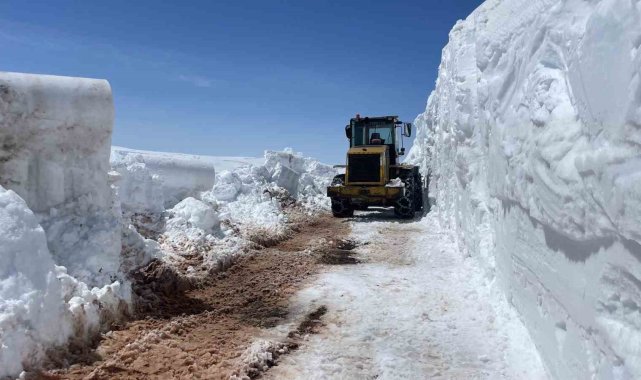 Ekipler Erzurum'un Tekman ilçesi Yalınca Mahallesi Eğriçayır Mezrası'nın karla kapalı yolunu açmak için iki günlük mesai harcadı. Zaman zaman 5 metreyi bulan kar yüksekliği çalışmaları zorlaştırıyor.