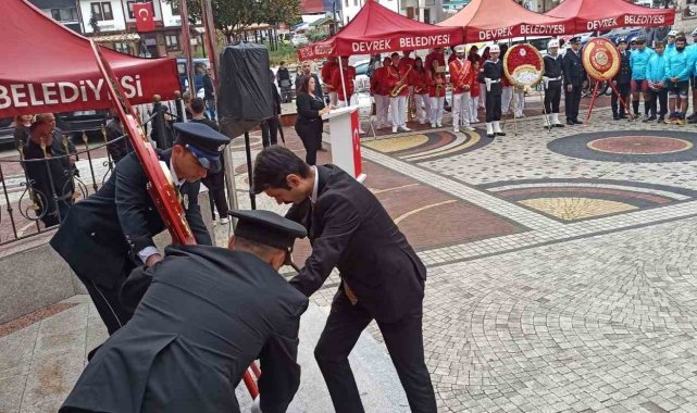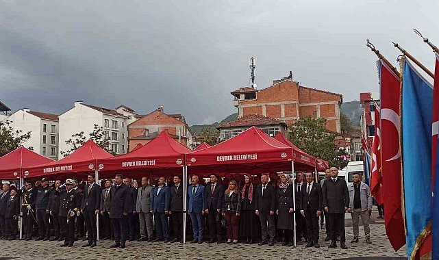Zonguldak'ın Devrek ilçesinde düzenlenen 29 Ekim Cumhuriyet Bayramının 102.yılı etkinlikleri kapsamında anıta çelenk sunumu ile başlandı.Cumhuriyet Alanında düzenlenen programa Devrek Kaymakamı Onur Alp Bıçakçı, Garnizon Komutanı Öğretmen Yüzbaşı Aykut Erdoğan ve Belediye Başkanı Özcan Ulupınar tarafından anıta çelenk sunumu ile başlanırken, çelenk sunumunun ardından saygı duruşu ve İstiklal Marşının okunmasının ardından tören sona erdi.Düzenlenen kutlama programına Devrek Kaymakamı Muhammed Evlice, Garnizon Komutanı Öğretmen Yüzbaşı Aykut Erdoğan Devrek Belediye Başkanı Özcan Ulupınar, siyasi parti temsilcileri, daire müdürleri, sivili toplum kuruluş temsilcileri, askeri erkan, öğrenciler ve çok sayıda davetli katıldı.