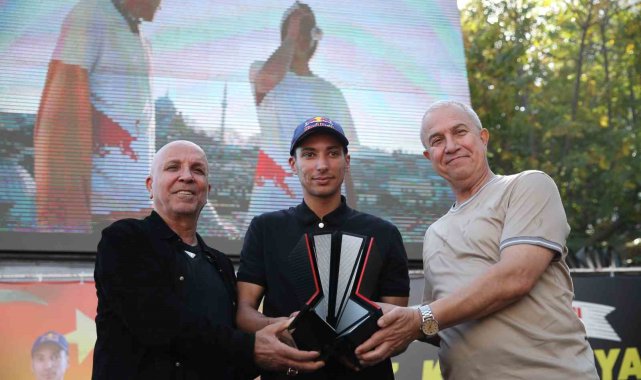 Dünya Superbike Şampiyonası'nda (WSBK) sezonu zirvede tamamlayarak kariyerinin üçüncü dünya şampiyonluğunu kazanan Red Bull sporcusu Toprak Razgatlıoğlu, memleketi Alanya'da coşkuyla karşılandı. Alanya halkı ve motosiklet tutkunları, milli sporcuyu görkemli bir konvoyla karşıladı.Dünyanın en prestijli motor sporları organizasyonlarından biri olan Dünya Superbike Şampiyonası'nın 2025 sezonunu zirvede tamamlayarak kariyerinin üçüncü dünya şampiyonluğunu kazanan Toprak Razgatlıoğlu, memleketi Alanya'ya döndü. Alanya Belediyesi'nin ev sahipliğinde düzenlenen karşılama etkinliği, sporcunun doğup büyüdüğü şehirde coşkulu anlara sahne oldu. Motosiklet konvoyuyla başlayan karşılamada yüzlerce motosiklet tutkunu, Dinek mevkiinden hareket ederek Razgatlıoğlu'nu karşıladı. Konvoy, Alanya İskele Meydanı'na kadar uzanarak şampiyona sevincini sokaklara taşıdı. Alanya halkı sporcuyu, Türk bayrakları ve alkışlarla selamladı.Şampiyonluğu ilan etmekten dolayı mutlu olduğunu söyleyen Dünya Şampiyonu Toprak Razgatlıoğlu "Öncelikle Belediye başkanıma ve Alanyaspor Başkanıma çok teşekkür ederim. Çok güzel konuşmalar yaptılar ve bu organizasyon içinde onlara da ayrıca teşekkür ediyorum. Ve sizler tabi ki de benim için çok değerlisiniz. Çünkü biliyorsunuz dünya şampiyonu olduğunuzda ben her zaman biz diyorum çünkü hep beraber bu dünya şampiyonluğunu elde ettik. Çünkü sizlerin yorumları ve bize olan sevginiz gerçekten bizleri çok güçlendiriyor. Biliyorsunuz çok zorlu bir sene geçirdik. Özellikle son yarışımız çok stresliydi. Rakibimiz tarafından yarış dışı kalmıştık. Son yarışta her şey bitti. O stres altında gerçekten yönetmek biraz zordu. Ama bir şekilde şampiyonluğu tekrar ilan ettik'' dedi.Artık MotoGP'de yarışıyoruzBundan sonra MotoGP'de yarışacağını ve bir Türk olarak orada olmaktan gurur duyacağını belirten Razgatlıoğlu "Biliyorsunuz şu an yarıştığım yerdeki son senemdi. Artık Moto GP de yarışıyoruz. Moto GP yarışan ilk Türk olacak açıkçası. Biz her zamanki gibi ülkemizi en iyi şekilde orada temsil etmeye devam edeceğiz. Özellikle bayrağımızı dalgalandırmaya çalışacağız. Biliyorsunuz yarış kazandıktan sonra da her defasında bayrağımız ile tur atıyoruz. Bu inanılmaz bir duygu, anlatılacak bir duygu değil. Ve daha demin de söylediğiniz gibi 21 defa yarış kazandık. Bu 21 defa İstiklal Marşı demek. Gerçekten çok güzel bir sezon geçirdik, inşallah MotoGP de bu şekilde başarılar devam eder" şeklinde konuştu.Şampiyonun ismi bir noktaya verilecekDünya Şampiyonumuzun isminin bir yere verileceğinin haberini veren Alanya Belediye Başkanı Osman Tarık Özçelik "Üçüncü Dünya Şampiyonası sonucunda davetimizi, Alanya'ya olan davetimizi kabul ettiği için üçüncü şampiyonası adına burada onu hep beraber karşıladık. Biz seneye şampiyon olduğunda stafflarına dağıtamayacağı bir hediyeyi Alanya olarak vereceğiz. Adının Alanya'da sonsuza kadar yaşaması için Alanya'ya bir noktaya kendisinin adını vereceğiz" dedi.Alanyaspor Başkanı Hasan Çavuşoğlu ise "Üçüncü kez dünya şampiyonu olan, bu gururu bize yaşatan Alanya'mızda bu kupayı, madalyayı, şampiyonluğu getiren Toprak kardeşime bir kez daha huzurunuzda teşekkür ediyorum. Allah ondan bin kere razı olsun. Toprak. Gördünüz bütün engellere rağmen şampiyon döndü. Biz onun şampiyon olacağına canı gönülden inanıyorduk. Keşke rahmetli ağabeyim sağ olsaydı da bugünleri görseydi. Ama o biliyordu zaten şampiyonluklar getireceğini, yaşayacağını. Ama şükür bugünlere Toprak. Göğsümüzü kabarttı" ifadelerini kullandı.Dünya Şampiyonu Toprak Razgatlıoğlu alanı dolduran sporseverler ile imza ve fotoğraf çektirmeyi ihmal etmedi. Ayrıca Toprak, sahnede Alanya Belediye Başkanı ve Alanyaspor Başkanı Hasan Çavuşoğlu ile Erik Dalı oyun havası oynadı.