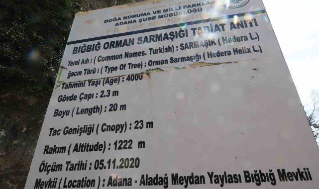Adana'nın Aladağ ilçesindeki yaklaşık 4 bin yıllık Bığbığ orman sarmaşığı, baharın gelişiyle birlikte ziyaretçilerini ağırlamaya başladı. Türkiye'nin en yaşlı ikinci canlısı arasında gösterilen tabiat anıtı, doğaseverlerin akınına uğradı.