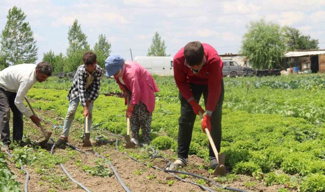 Eskişehir'de sıcaklıkların 40 derecelere kadar yükseldiği günlerde mevsimlik tarım işçilerinin tarlalardaki zorlu mesaisi sürüyor.Hava sıcaklıklarının 40 dereceyi bulduğu Eskişehir'de tarlada zorlu mücadele sürüyor. Mevsimlik tarım işçileri yüksek sıcaklığa rağmen gün boyu mesai yapıyor. İşçiler, vatandaşların gölgelik alanları ve klimalı ortamları tercih ettiği yüksek sıcaklıklarda güneşin altında güçlükle çalışıyor. İşçilerin zorlu şartlarda topladığı marul, maydanoz ve diğer yeşillikler, İstanbul ve Ankara'ya gönderiliyor.Sıcak havada işçi bulmanın zor olduğunu ve üreticilerin de çalışmalara yardım ettiğini söyleyen Yeşil Sakarya Üreticiler Derneği Başkanı Süleyman Buluşan, "Gerçekten çok zor, ama onların da bizim de başka bu işi yapacağımız bir konum yok. Çünkü sıcak olmazsa bizim işimiz de olmaz. Sıcaklarda çalışmak zorundalar, biz de onlarla birlikte çalışmaktayız zaten sıcak soğuk demeden çünkü bu mevsimlik bir iş. Tabi ki zorlukları var, şimdi en büyük sıkıntı işten anlama ve yaptığı işi benimseme, çünkü maliyetler çok fazla arttığı için işçilik bile büyük bir sorun şu anda. O açıdan işçi çok önemli, işçinin hakikaten vicdanen bu işi yapması lazım. İyi işçi bulma zorluğundan öte, gerçekten eskisi gibi iyi çalışan yok. Örneğin, genelde yerli arkadaşlar Urfa veya Mardin'den gelme, o bölgeden gelen üretici arkadaşlarımız şu anda daha ağırlıklı" dedi."Şu anki nesilde hakikaten bir sıkıntı var"İşçilerin artık tarımdan çekildiğini ve maliyetlerin üretimin altında kaldığını söyleyen Süleyman Buluşan, ekonomik şartların çiftçiliği etkilediğini, işçilerin de emeğinin karşılığını alması gerektiğini belirtti:"Bizim yerli işçilerimiz artık tamamen ailesiyle beraber herkes sahadan yani tarımdan çekildi. Tarım işçisi bulmak zor, tarımı yapmak zor. Şu anki nesilde hakikaten bir sıkıntı var. İşin zorluğunu gördüğü için, bu zorluk sadece sıcaklığından değil maliyetinin de altında kalıyor. Bunları gördüğü zaman hem işçi hem işveren üretimdeki farklı bir şeye geçmeye kalkıyor. Bugün en fazla şu anda üreticinin yaptığı, 'İşçi çalıştırmadan nasıl bir üretim yapabilirim', bunun peşine düşüyor. Zaten fiyat sezon başında görüşülüyor, tabi ki şu anki ekonomik şartlara göre her sene değişiyor. Onların da alın teri başka bir şeye benzemez. O açıdan şu anda mahsulün para yapmaması herkesi sıkıntıya sokuyor ama ne olursa olsun sonuçta işçi emeğinin karşılığını almak zorunda.""Yapacak bir şey yok mecburen çalışacağız"Çalışmak için ailece Şanlıurfa'dan geldiklerini söyleyen ve sıcaktaki zorlu çalışma şartlarından bahseden çiftçi Halil Çelik, "Gördüğünüz gibi marul, yeşillik çeşitlerini çapalıyoruz. Yapacak bir şey yok mecburen çalışacağız. Zor ama emeğimizin karşılığında çalışıyoruz. Baş dönmesi olmasa da güneş baya etkiliyor. Çocuklarda çalışıyor, küçükleri hep peşimizden geliyor. Saat sabah 7'de başlıyoruz, akşam 5'te bırakıyoruz. Marul, brokoli, bahar kesiyoruz. Biberler de yavaş yavaş geliyor, bir hafta sonra o da kesilir. Patronumuz da ara sıra buraya geliyor zaten, Allah razı olsun ondan da" dedi.