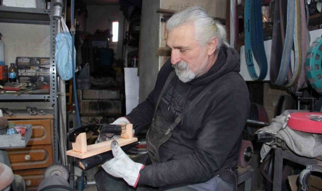 Giresun'un Sokakbaşı Mahallesi'nde yöresel bıçak üretimi yapan Haluk Kemal Yücesan, 40 yaşından sonra çırak olarak adım attığı meslekte, kentin yüzlerce yıllık bıçakçılık kültürünü yaşatan son ustalar arasında yer alıyor.