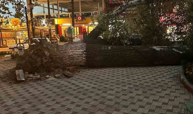 457 yıllık anıt ağacı Akkavak kökünden devrildi, facianın eşiğinden dönüldü