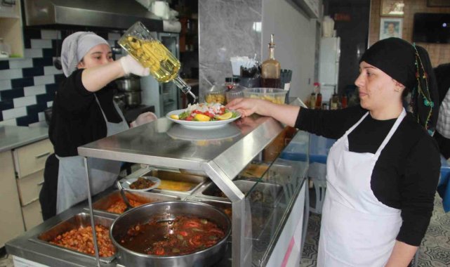 Ordu'da faaliyet gösteren bir lokantada tüm çalışanların kadın olması dikkat çekiyor. Döner ustasından pide ustasına kadar kadınların görev aldığı işletmede erkekler ise sadece paket servislerde görev alıyor.Ordu'nun Perşembe ilçesindeki aile işletmesinde 5 kadın birlikte çalışıyor. Kadın emeğinin ön planda olduğu işletmede taş fırından döner tezgahına, servisten mutfağa kadar tüm alanlarda kadınlar görev yaparken, erkekler yalnızca siparişlerin adreslere ulaştırılmasında destek veriyor."Fırının başına geçtim, mesleği öğrendim"İşletmeci ve aynı zamanda pide ile lahmacun ustası olan evli ve 3 çocuk annesi Ayşenur Pamuk, eşiyle birlikte yıllardır bu işi sürdürdüklerini söyledi. Pamuk, "Yaklaşık 20 yıldır bu işletmede çalışıyoruz. Önceden ustamız vardı, emekli olunca yeni usta bulamadık. Ben de öğrenerek fırının başına geçtim. Kadınlar olarak burada uyum içinde çalışıyoruz. Her işte birbirimize destek oluyoruz. İşimizi severek yapıyoruz" dedi."Kadınlar daha titiz ve pratik"Lokantada aşçı ve döner ustası olarak çalışan Nurten Odabaşı ise mesleğe 22 yıl önce başladığını belirterek, "Eskiden lokantalarda kadın çalışan sayısı çok azdı. Şimdi bu sayı giderek artıyor. Kadınların daha hijyenik, daha pratik ve güler yüzlü olduğunu düşünüyorum. Sağlığım el verdiği sürece çalışmaya devam edeceğim. Kadınların olduğu ortamda müşteriler de memnun oluyor" diye konuştu."Müşteriler kadın emeğini görünce mutlu oluyor"Yaklaşık 20 yıldır aynı işletmede çalışan Ayşegül Pamuk da birlikte çalışmanın kendileri için önemli olduğunu ifade etti. Pamuk, "Burada 5 kadın olarak çalışıyoruz. Fırıncımız, aşçımız, döner ustamız, garsonlarımız ve bulaşıkçımız kadın. Müşterilerimiz kadınların çalıştığını görünce daha güvenle yaklaşıyor. Bu durum bizi de mutlu ediyor" ifadelerini kullandı.Sami Atacan isimli müşteri ise kadınların çalıştığı işletmeleri tercih ettiğini kaydetti.