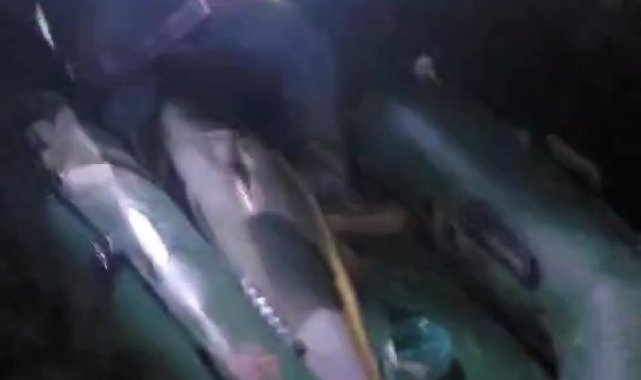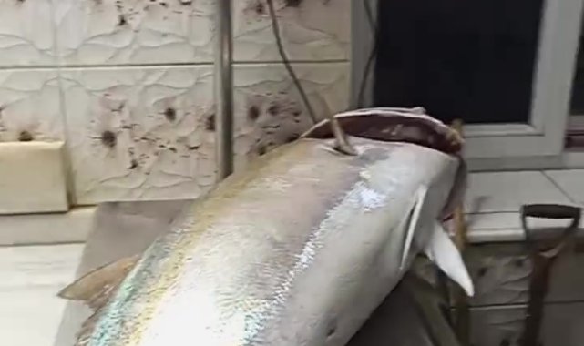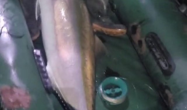 50 kiloluk Akya balığını 2 kişi, 2 saatlik mücadeleyle yakalamayı başardı