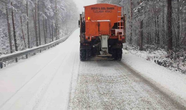 DÜZCE (İHA) – Düzce'de etkili olan kar yağışı ile birlikte Düzce İl özel İdaresi ekipleri de sahada 63 iş makinesi ile çalışmalarını sürdürüyor.