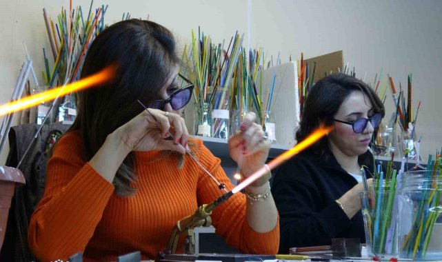 Gaziantep'te 800 derece ateşte ısıttıkları çubuk camlara şekil veren kadınlar, sabır ve gayretle hayal gücünü de kullanarak ortaya birbirinden değerli sanat eserleri çıkartıyor.