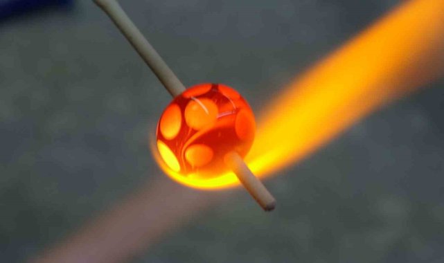 800 derece ateşle buluşan cam sanat eserine dönüşüyor