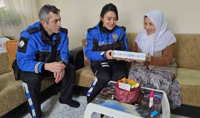 81 yaşındaki yaşlı kadına, emniyetten doğum günü sürprizi