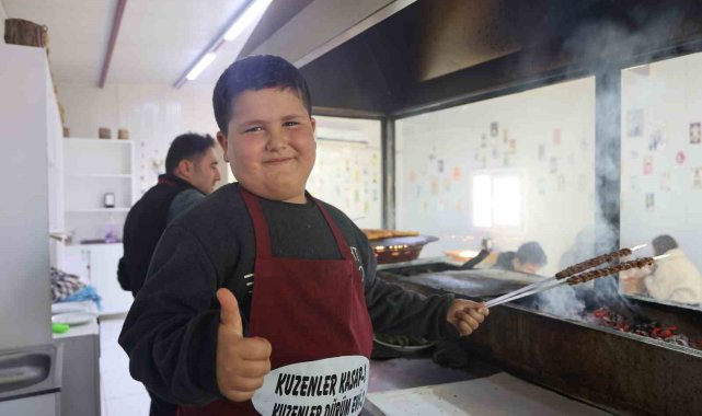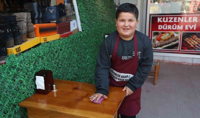 Hatay'da yarıyıl tatilini bir kebapçıda çıraklık yaparak geçiren 9 yaşındaki Adem Şölen, kendine has 'Kebaba gel, ciğere gel' değişiyle müşterilerin yüzünü gülümsetiyor.Antakya ilçesi Meydan Mahallesi'nde yaşayan 9 yaşındaki Adem Şölen, tatil günlerini kebapçıda çıraklık yaparak geçiriyor. Her okul tatilini fırsat bilerek çok sevdiği iş yerine gelen Şölen, azmiyle ve çalışma hevesiyle takdir toplarken iş yeri sahibi ve müşterilerinde yoğun ilgisiyle karşılaşıyor. Kendine has 'Kebaba gel, ciğere gel' değişiyle müşterilere seslenen Şölen, duyanları tebessüm ettiriyor."Müşteriler beni görünce aferin diyorlar ve bana bahşiş veriyorlar"Okulların tatil olmasıyla birlikte kebapçıda çıraklık yapmaya başladığını dile getiren 9 yaşındaki Adem Şölen, müşterilerin kendini severek bahşiş verdiğini ifade edere "Ben burada çalışıyorum. Tabakları kaldırıyorum. Yerleri süpürüyorum ve siliyorum. Masaları topluyorum. Kebapları çeviriyorum. Ustalar bir şey istediğinde yardım ediyorum. Burayı çok seviyorum. Bu işi çok seviyorum. Büyüdüğümde polis olmak istiyorum. İlerde de dükkan açabilirim. 3'üncü sınıfa gidiyorum. Okullar tatil olduğunda burada çalışıyorum. Müşteriler beni görünce aferin diyorlar ve bana bahşiş veriyorlar. İşler kolay çünkü bu işi seviyorum" dedi.Adem'in iş yerinin neşesi olduğunu ifade eden işletmeci Kasım Kahramanoğlu, "Ben bu işyerini 5 aydır açtım. Adem de 5 aydır buraya gelir. Adem çalışkan bir çocuk ve kendisi benim müdürümdür. Canı isterse gelir canı istemezse gelmez. Benim elim ayağım sağ kolumdur. Ne iş verirsem yapar. Yerleri siler ve temizler. Temizlik yapmayı çok sever. Önce ders sonra kebapçılık öğrenecek. Sömestr tatili olduğu için burada çalışıyor. Ben kendisinden memnunum. Müşteriler seviyor. İşyerimizin neşesi Adem, Allah eksik etmesin. Dışarda gezeceğine burada meslek öğreniyor. Burada hem meslek öğreniyor hem de ailesine katkıda bulunuyor" ifadelerini kullandı.