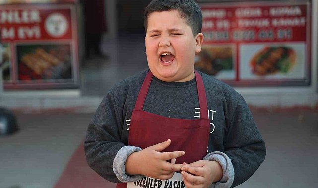 9 yaşındaki Adem, kendine has 'Kebaba gel, ciğere gel' değişiyle ilgi odağı oldu