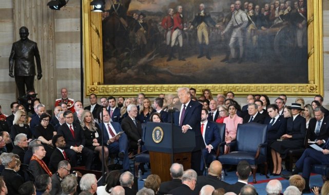 Donald Trump, ABD'nin 47. başkanı olarak yemin ederek resmen göreve başladı.ABD'de ikinci Donald Trump dönemi başladı. Başkent Washington DC'deki Kongre Binası Rotunda Salonu'nda düzenlene törenle Trump, ABD'nin 47. başkanı olarak yemin ederek resmen göreve başladı. Yaşayan tüm eski ABD başkanları olan Barack Obama, Bill Clinton, Joe Biden ve Başkan Yardımcısı Kamala Harris ile senatörler, Temsilciler Meclisi üyeleri törendeki yerlerini aldı. İş dünyasının önde gelen isimleri Elon Musk, Jeff Bezos, Mark Zuckerberg ve Sundar Pichai de törene katıldı. Törenin başında New York Başpiskoposu'nun dua okumasının ardından ilk olarak Başkan Yardımcısı James David Vance, ardından Trump iki İncil'e el basarak yemin etti."ABD'nin altın çağı başladı"Yemin töreninin ardından ilk konuşmasında Trump, ABD'nin altın çağının başladığını ilan ederek, "Bugünden itibaren ülkemiz yeniden refaha kavuşacak ve bizden faydalanılmasına asla izin vermeyeceğiz. Tüm dünyaya ABD'nin yeniden bir numara olduğunu göstereceğiz" dedi.ABD'deki ekonomik ve sosyal krizlere değinen Trump, Los Angeles'taki ev krizine, eğitim sisteminin kötü durumuna ve sağlık hizmetlerindeki eksikliklere vurgu yaptı. "Tüm bunlar bugünle birlikte değişecek ve çok hızlı olacak" diyen Trump, değişim sürecini hızla başlatma sözü verdi.Güney sınırında acil durum ilan edilecekSınır güvenliği konusunda kararlı bir duruş sergileyeceğini belirten Trump, güney sınırında acil durum ilan edeceğini duyurarak, yasa dışı girişleri tamamen durdurmayı hedeflediğini ifade etti. Trump, "Kartelleri yabancı terör örgütü olarak ilan edeceğiz ve federal güçlerimizi bu suç ağlarına karşı harekete geçireceğiz" ifadelerini kullanarak, milyonlarca suçlu yabancının sınır dışı edileceğini vurguladı. Trump, "yakala ve serbest bırak" politikasına son verileceğini açıkladı."Enerji acil durumu ilan ederek fiyatları düşüreceğiz"Trump, ABD'yi yeniden bir üretim üssüne dönüştürme hedefini vurgulayarak, fosil yakıt rezervlerini aktif olarak kullanacaklarını belirtti. Trump, "Enerji acil durumu ilan ederek fiyatları düşüreceğiz ve ABD enerjisini dört bir yana satacağız. Yeniden zengin bir ülke olacağız" ifadelerini kullanarak, elektrikli araç zorunluluğunu kaldıracağını ve otomotiv sektörünü yeniden canlandıracağını açıkladı."Bir daha asla ülkemizin gücü, siyasi rakipleri korkutmak için bir silah olmayacak"Konuşmasında ifade özgürlüğüne özel bir vurgu yapan Trump, "Bir daha asla ülkemizin gücü, siyasi rakipleri korkutmak için bir silah olmayacak" ifadelerini kullanarak, adalet sistemini her ABD'liye eşit şekilde hizmet verecek şekilde düzenleme sözü verdi. Trump, Covid-19 aşısı nedeniyle işlerinden ayrılmak zorunda kalan askerlerin de görevlerine iade edileceğini duyurdu."Irk ve cinsiyet konusunda yapay ayrımlara son vereceğiz"Martin Luther King'in hayallerini gerçekleştirme sözü veren Trump, 20 Ocak'ı "özgürlük günü" ilan etti. Trump, "Bugünden itibaren yalnızca iki cinsiyetin bulunduğunu kabul edeceğiz: kadın ve erkek. Irk ve cinsiyet konusunda yapay ayrımlara son vereceğiz" ifadelerini kullandı."Panama Kanalı'nı geri alacağız ve Meksika Körfezi'ni Amerika Körfezi olarak adlandıracağız"ABD'nin dünya üzerindeki egemenliğini artırmayı hedeflediğini belirten Trump, Panama Kanalı'nı Çin'in yönettiğini iddia ederek, "Panama Kanalı'nı geri alacağız ve Meksika Körfezi'ni Amerika Körfezi olarak adlandıracağız" ifadelerini kullandı. Dünyanın en güçlü ordusunu yeniden inşa etme sözü veren Trump, "Tüm savaşları bitireceğiz ve ABD'yi dünya sahnesinde en saygıdeğer konuma taşıyacağız" dedi.Trump, "Geçmişte çok acılar çektik ama bugün yeniden birlikte başaracağız. Hiç kimse ABD halkının gücüne engel olamaz. Geleceğimiz çok parlak ve yeniden çok sevdiğiniz bu ülkeyi inşa edeceğiz" dedi.Konuşmasının ardından Trump, Beyaz Saray'a geçerek ilk başkanlık kararnamelerini imzalayacağını duyurdu. Kararnamelerin enerji fiyatlarının düşürülmesi, sınır güvenliği önlemleri ve anayasa karşıtı sansür uygulamalarının kaldırılması gibi konuları kapsaması bekleniyor.