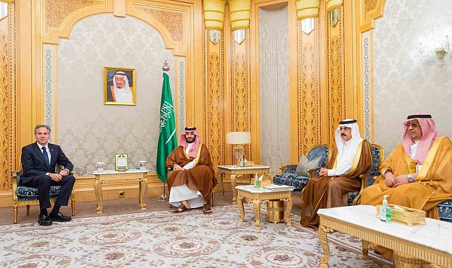 ABD Dışişleri Bakanı Antony Blinken, Orta Doğu ziyareti kapsamında geldiği Suudi Arabistan'da Suudi Arabistan Veliaht Prensi Muhammed bin Selman ile bir araya geldi.ABD Dışişleri Bakanı Antony Blinken, İsrail'in Gazze Şeridi'ndeki saldırılarının başladığı 7 Ekim 2023 tarihinden bu yana çıktığı 11. Orta Doğu turu kapsamında İsrail'in ardından Suudi Arabistan'a geldi. Blinken, Suudi Arabistan Veliaht Prensi Muhammed bin Selman ile bir araya geldi. Görüşmede, Orta Doğu'daki çatışmaları sona erdirme çabaları ele alındı.Blinken, Suudi Arabistan'ın ardından Katar'a daha sonra ise İngiltere'ye gidecek.