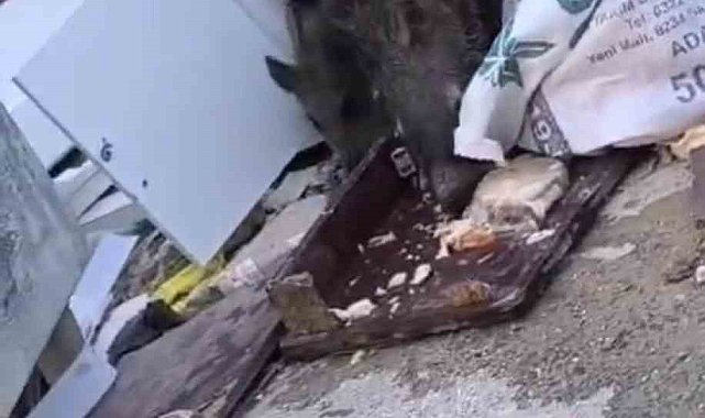 Hatay'da yiyecek aramak için şehre inen domuz ve yavruları cep telefonu kamerasına yansıdı.Defne ilçesi Harbiye Mahallesi'nde aç kalan domuz ve yavruları yerleşim yerine indi. Sıklıkla bölgede yaşayan vatandaşlarca görülen domuzlar, geçtiğimiz gün çöp konteynerinin çevresinde yem ararken görüntülendi. Bir süre yem arayan domuzlar, çevreye zarar vermeden gözden kayboldu. Domuzların yiyecek aradığı o anlar kameraya yansıdı.