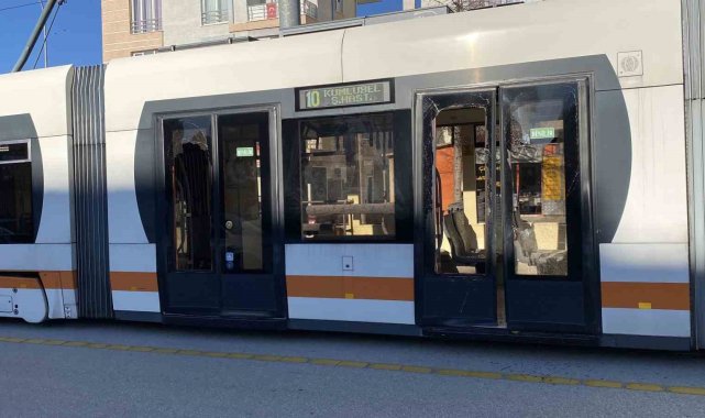 Eskişehir'de sürücüsünün bayrak asmak için açık bıraktığı servisin kapısına çarpan tramvayın içerisindeki 3 yolcu yaralandı.