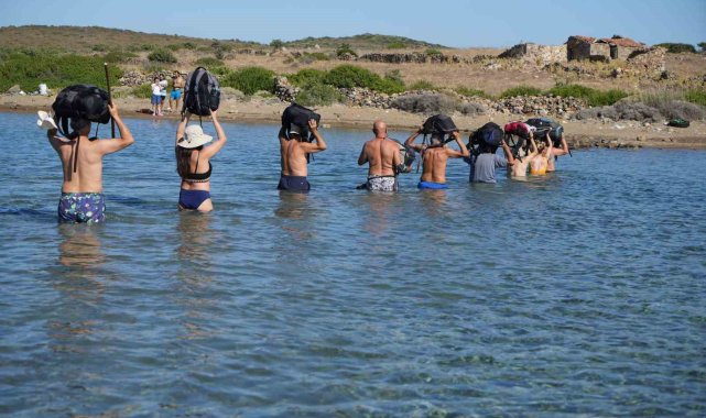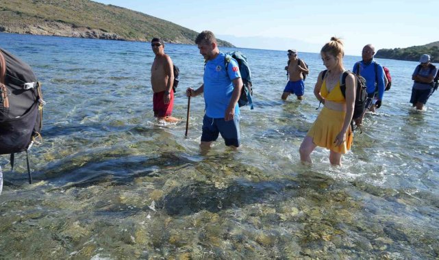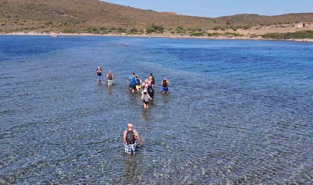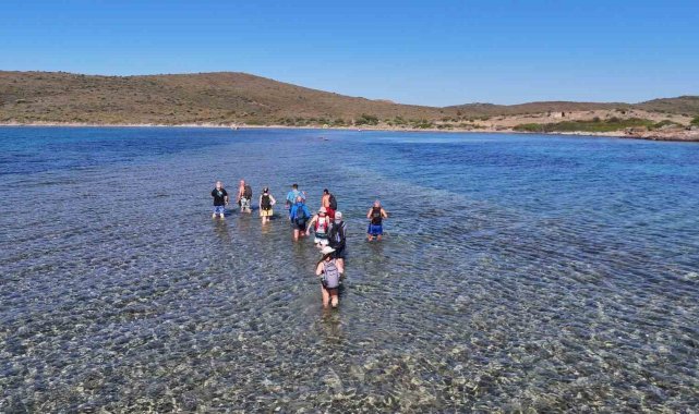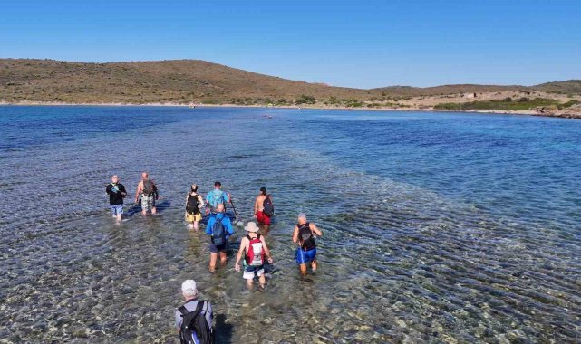 Balıkesir'in Ayvalık ilçesinde, Cunda Adası'ndan Maden Adası'na deniz içinden yürüyerek geçilen ender bir doğa yürüyüşü etkinliği gerçekleştirildi. Katılımcılar, bir adadan diğerine denizden yürüyerek geçmenin heyecanını yaşadı. Türkiye'de nadir görülen bu doğal geçiş, doğaseverlere unutulmaz bir deneyim sundu.Yürüyüş grubu lideri Erhan Çiftçi öncülüğünde yapılan etkinlikte, doğa tutkunları Cunda Adası'nın Pateriça Burnu'ndan yürüyüşe başladı. Katılımcılar, Yalancı Boğaz üzerinden, deniz seviyesinin yürümeye elverişli olduğu dar bir geçidi kullanarak Maden Adası'na ulaştı. Grup lideri Çiftçi, "Bugün biz burada doğanın nimetlerinden faydalanmaya, yaşadığımız coğrafyanın en güzel yerlerini görmeye geldik. Şu anda Cunda Adası'ndayız ve karşımızda Maden Adası var. Bugün yürüyerek bir adadan diğerine geçeceğiz. Bu, Türkiye'de çok seyrek görülen, eşsiz bir deneyim," dedi.Etkinliğe Amerika'dan katılan doğa yürüyüşçüsü Bilge Akpınar ise, "Benim için çok güzel bir deneyim olacak. İlk defa böyle bir yer gördüm, duydum. Normalde Amerika'da yaşıyorum. Suyun içinden yürüyerek başka bir adaya geçmek gerçekten ilginç ve unutulmaz bir deneyim olacak," diye konuştu. İlk kez etkinliğe katılan doğa yürüyüşçüsü Niyazi Tekin de, "Heyecanlıyım, ilk defa yürüyeceğim. Umarım güzel ve keyifli bir yürüyüş olur," ifadelerini kullandı.Yürüyüşçüler, Maden Adası'nda bulunan koylarda yüzüp doğayla baş başa vakit geçirdikten sonra aynı güzergâhı kullanarak Cunda Adası'na geri döndü. Sadece belirli dönemlerde ve uygun su seviyesi şartlarında yapılabilen bu özel yürüyüş, katılımcılara eşsiz bir deneyim sunarak doğayla bütünleşmenin en sıra dışı yollarından birini gösterdi.