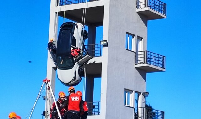 Adana'da AFAD koordinasyonunda 10 kurumdan 175 personelin katılımıyla deprem tatbikatı yapılırken, senaryo gereği uçurumdan sarkmış bir araçta da kurtarma gerçekleştirildi.