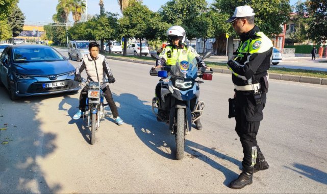 Adana'da trafik polislerince yapılan denetimlerde bin 64 motosiklet kontrol edilirken, 433 sürücüye idari para cezası uygulandı, 62'si trafikten men edildi.Alınan bilgiye göre, İl Emniyet Müdürlüğü Trafik Denetleme Şubesi ekipleri, kent genelinde motosikletlere yönelik geniş kapsamlı uygulama gerçekleştirdi. Denetimlerde bin 64 motosiklet kontrol edildi. Kurallara uymadığı tespit edilen 433 sürücüye idari para cezası uygulanırken, 62 motosiklet trafikten men edildi. Ceza maddelerine göre en fazla işlem kask kullanmamak ve ehliyetsiz araç kullanmak nedeniyle yapıldı. Uygulama sırasında polisin 'dur' ihtarına uymayarak kaçmaya çalışan motosiklet sürücüleri de yakalanarak cezai işlem uygulandı."Garsonluk yapıyorum cezayı ödeyemem"Motosikletin önünü kaldırdığı gerekçesiyle polis tarafından yakalanıp uygulama noktasına getirilen genç sürücü Mehmet Kargı, "Ben motosikletin önünü kaldırmadım. Ters yönden geldiğim için ceza yedim. Garsonluk yapıyorum ve cezayı ödeyebilecek maddi durumum yok" dedi.Motosikletlerin kapsamı dışında kullanıldığını belirten vatandaşlardan Fatih Yıldız ise "Çoluk çocuk motosikleti çok kötü kullanıyor. Kazaya sebebiyet veriyorlar. Adana düz bir yer o nedenle herkes motor kullanıyor. Çin motosikleti de piyasaya girdi. Ucuz olduğu için herkesin altında motosiklet var" diye konuştu.Kadın sürücü Beyda Sevinç ise "Bir kadın olarak trafikte çok fazla sıkıştıran var. Daha kibar olunabilir. Sonuçta biz de sürücüyüz, sadece erkeklere özel değil. Sıkıştırmayı geçtim, çok fazla argo kelimeye de maruz kalıyoruz. Umarım daha kibar bir Adana görebiliriz" ifadelerini kullandı.