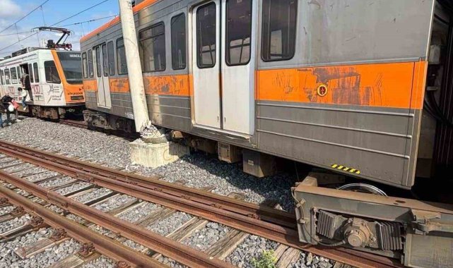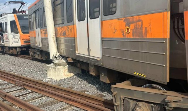 Adana'da raydan çıkan metro vagonu direğe çarptı