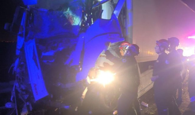 Adana'da otoyolda tır, emniyet şeridinde park halindeki tur otobüsüne arkadan çarptı 1'i ağır 14 kişi yaralandı.