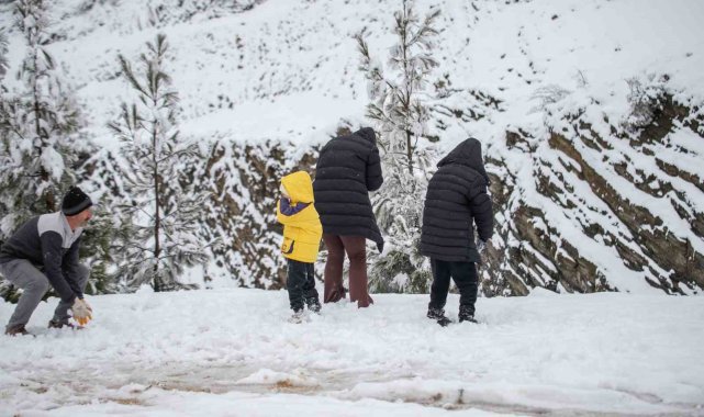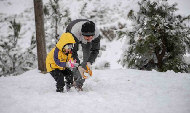 Adana'nın yüksek kesimlerine kar yağdı, çocuklar doyasıya eğlendi