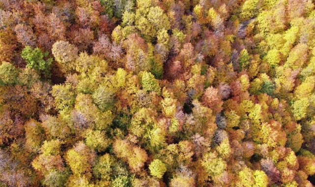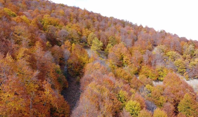 Yozgat ile Aydıncık arasındaki bin 550 rakımlı Şebek Geçidi, sonbaharın tüm renk tonlarına bürünerek adeta doğanın tuvale dönüşmüş haliyle görenleri büyülüyor. Dron kamerasıyla kaydedilen görüntüler, bölgenin kartpostallık manzaralarını gözler önüne serdi.Meşe, ardıç, karaçam ve bölgede nadir rastlanan genellikle Karadeniz ikliminde yetişen doğu kayınının oluşturduğu zengin bitki dokusuyla dikkat çeken Şebek Geçidi'nde, yeşilden sarıya, kahverengiden kırmızının en sıcak tonlarına kadar uzanan renk geçişleri, doğaseverlerin ilgisini çekiyor. Bölgedeki ağaçların yaprakları, sonbaharın gelişiyle birlikte renk değiştirerek dağ yamaçlarını canlı bir tabloya dönüştürdü.Geçitten yolu geçen vatandaşlar da bu eşsiz manzarayı ölümsüzleştirmek için durup fotoğraf çekiyor. O isimlerden biri olan Kelami Efe Yıldırım, gördüklerinden etkilenerek duygularını şu sözlerle dile getirdi: "Sorgun'dan Aydıncık'a iş için gidiyorum. Şebek geçidinden geçerken ağaçların rengini gördüm. Durduk, fotoğraf çektirdik. Doğa renk cümbüşüne dönmüş. Çok güzel renkler var. Kahverenginin, kırmızının her tonu var. Buradan geçenler mutlaka izlesinler, fotoğrafını çeksinler. Yani çok güzel bir yer."