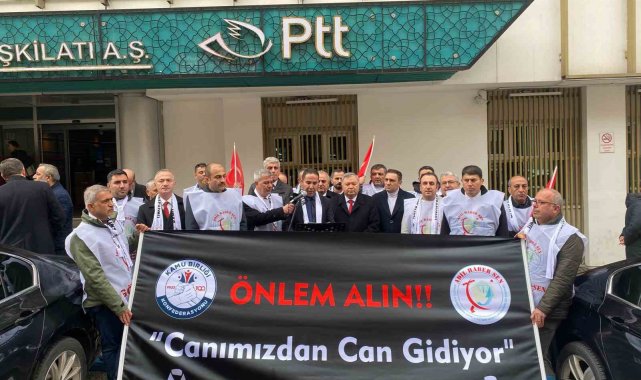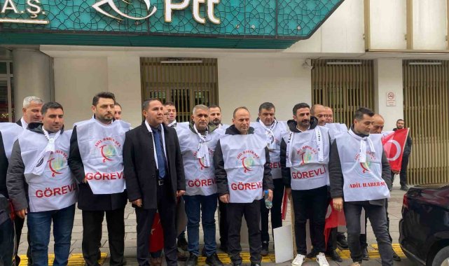 Ankara'da toplanan Adil Haber-Sen üyeleri, yaptıkları basın açıklamasıyla Rize'de PTT Başmüdürlüğü'nde saldırıya uğrayan 2 çalışanın cenazelerinin defnedildiği gün kurumun çalışmasına tepki gösterdi.Rize'de PTT Başmüdürlüğü'ne düzenlenen silahlı saldırıda PTT çalışanı Selim Okumuş ve Ömer Bayazıt hayatını kaybetmişti. Hayatını kaybeden 2 çalışan için Adil Haber-Sen tarafından Ankara'da bulunan Posta Telgraf Teşkilatı (PTT) Genel Müdürlüğü önünde eylem yapıldı. Görülmeyeni göstermek, duyulmayanı duyurmak ve konuşulmayanı konuşmak için toplandıklarını belirten Adil Haber-Sen Genel Başkanı Kenan Arık, geçtiğimiz hafta Rize PTT Başmüdürlüğü'nde görev yapan iki mesai arkadaşını kaybetmenin üzüntüsünü yaşadığını belirtti. Arık, "Hayatını kaybeden mesai arkadaşlarımız merhum Selim Okumuş ve merhum Ömer Bayazıt'a Yüce Allah'tan rahmet, kederli aileleri, yakınları ve tüm PTT çalışanlarına başsağlığı ve sabırlar diliyoruz. Bu alçak saldırıyı lanetliyoruz ve saldırıyı gerçekleştiren kişinin ağır en cezayı alması için bizler de davaya müdahil olacağız. Temennimiz odur ki o cani bir daha gün yüzü göremeyecek. Ancak bizlerin de üstüne düşen bazı görevler vardır. Her şeyden önce PTT çalışanlarının değerli olduğunu, sahipsiz olmadığını tüm kamuoyuna duyurmamız gerekmektedir. Bunun için bizler bugün tüm ülkede iş bıraktık ve kamuoyunun dikkatini çekmek istedik. Ama maalesef üzülerek gördük ki olayın yaşandığı Rize'de dahi merhumların cenazesinin kaldırıldığı gün bazı yöneticiler talimat vererek, işlerin aksatılmadan devam ettirilmesi istenmiştir. Bu talimatı kim, neden, nasıl verdi bilmiyoruz. Ama o kişiler de senin kardeşin, oğlun veya baban olabilirdi. Rize'de bir gün PTT çalışmayınca dünyanın sonu değildi" diye konuştu.