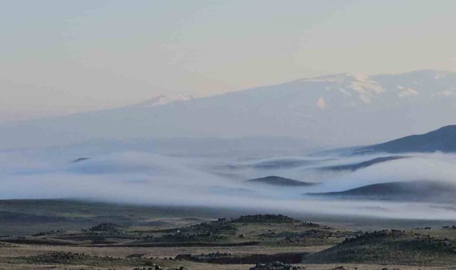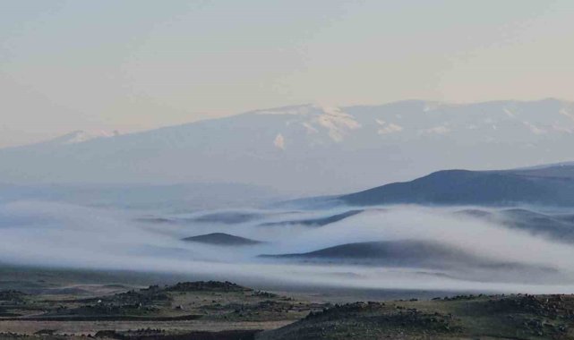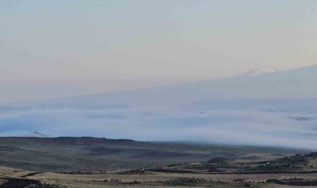Bitlis'in Adilcevaz ilçesinde sabah saatlerinde etkili olan yoğun sis, ovayı adeta beyaz bir örtüyle kaplayarak görsel bir şölen sundu.