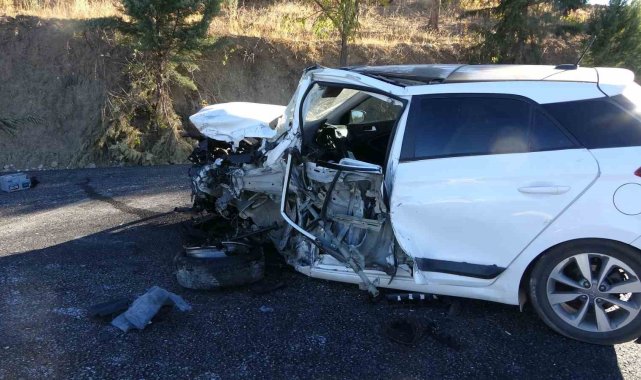 Adıyaman'da, iki otomobilin kafa kafaya çarpışması sonucu meydana gelen feci kazada 1 polis ve 1 muhtar ağır yaralandı.