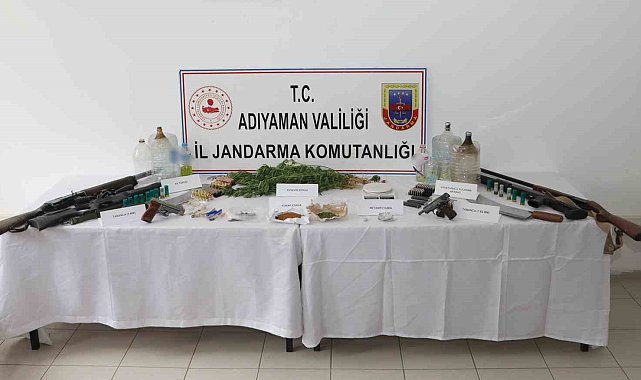 Adıyaman merkezli uyuşturucu operasyonunda 11 şahıs gözaltına alındı.Edinilen bilgilere göre, Adıyaman'ın Gölbaşı İlçe Jandarma Komutanlığı ekiplerince uyuşturucu satıcılarına yönelik Gölbaşı ve Malatya'nın Doğanşehir ilçesinde belirlenen 7 farklı adrese eş zamanlı operasyon düzenlendi.Adreslere yapılan şafak operasyonunda 51 gram kubar esrar, 3 gram sentetik kannabinoid hammaddesi, 25 gram sentetik kannabinoid, 2 gram metamfetamin, 14 kök kenevir bitkisi, 1 hassas terazi, 21 adet uyuşturucu kullanma aparatı, 1 adet 9 mm ruhsatsız tabanca, 1 adet 7.65 mm ruhsatsız tabanca, 107 adet 7.65 mm tabanca fişeği, 221 adet 9 mm tabanca fişeği, 5 adet tabanca şarjörü, 1 adet yarı otomatik av tüfeği, 1 pompalı tüfek, 1 adet tek kırma tüfek, 12 adet av tüfeği fişeği, 44 adet kurusıkı tabanca fişeği, 1 muşta ve 2 kama ele geçirildi. Ele geçirilen malzemeler muhafaza altına alınırken Gölbaşı ilçesinde 7 şüpheli şahıs, Doğanşehir ilçesinde 4 şüpheli şahıs olmak üzere toplam 11 kişi gözaltına alındı. Gözaltına alınan şahıslar, sorgulanmak üzere jandarma komutanlığına götürüldü.Olayla ilgili soruşturma başlatıldı.