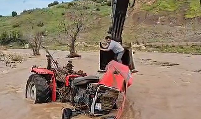 Kilis'in Musabeyli ilçesinde traktörüyle Afrin Çayı'ndan geçmeye çalışırken suyun içinde mahsur kalan vatandaş, ekipler tarafından kurtarıldı.