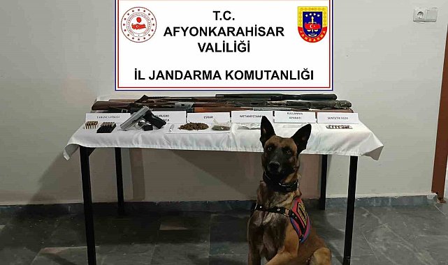 Afyonkarahisar'da jandarma ekipleri araç içerisinde uyuşturucu madde kullanan 3 şüpheli şahsı yakalarken araçta ve şahısların adreslerinde yaptığı aramada, çeşitli türlerde uyuşturucu madde ve ruhsatsız silah ele geçirdi.Afyonkarahisar İl Jandarma Komutanlığı, uyuşturucu ile mücadele kapsamında Sultandağı ilçesi Üçkuyu köyünde icra edilen önleyici kolluk devriyesinde araç içerisinde bulunan M.G., S.K. ve İ.K., isimli şahısların uyuşturucu madde kullandıkları yönünde bilgi elde etti. Bunun üzerine, Jandarma ekiplerince araç durduruldu, şüpheli şahısların aracında, ikametinde ve eklentilerinde uyuşturucu madde arama köpeği ile birlikte arama yapıldı. Yapılan aramada, 11 gram kubar esrar, 14 adet galara sentetik ecza hapı, 1,5 gram metamfetamin, 1 adet uyuşturucu madde kullanma aparatı, 2,6 gram, tütün ile karıştırılmış esrar maddesi, 4 adet ruhsatsız av tüfeği, 1 adet kuru sıkı tabanca, 49 adet fişek, ele geçirildi.