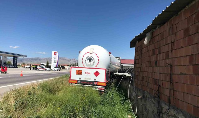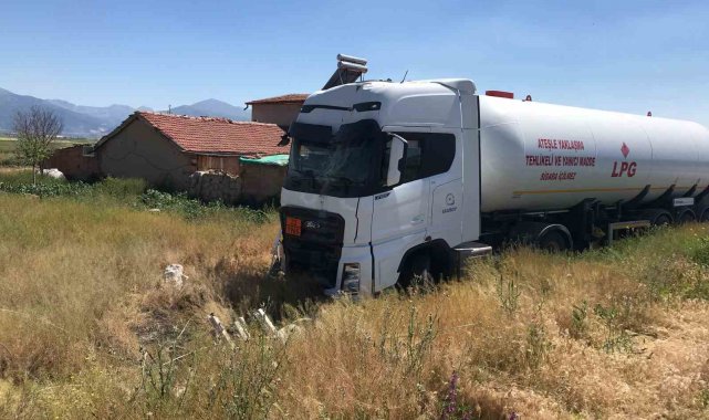 Afyonkarahisar'da kontrolde çıkan LPG yüklü tanker elektrik direğini devirip ardından bir evin bahçesinde besihanenin duvarına çarparak durabilirken, olayda şans eseri ölen ya da yaralanan olmadı.