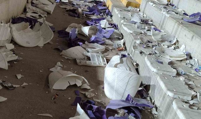 Afyonkarahisar'da oynanan Afyonspor-Eskişehirspor maçı sonrası yaşanan tribün olaylarında 2 bine yakın koltuk yerinden sökülerek sahaya atıldı.