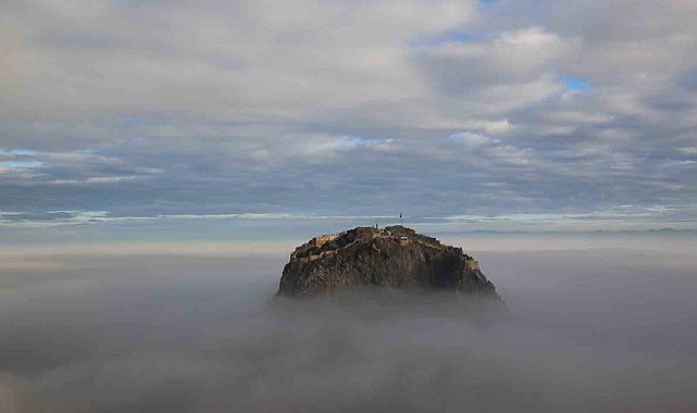 Afyonkarahisar'ın simgesi Karahisar Kalesi ile birlikte kentin farklı noktalarından çekilen sis görüntüleri görenleri mest etti.