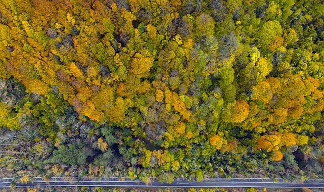 Karabük ile Bartın arasındaki karayolunun 5 kilometrelik bölümünde sağlı sollu uzanan ağaçların oluşturduğu "ağaç tünel yol", sonbaharın gelişiyle birlikte sarı, yeşil ve kahverenginin büyüleyici tonlarına büründü.Karabük-Bartın karayolunun Ovacuma ve Bahçecik köyleri arasında yer alan "ağaç tünel yol", her mevsim farklı bir manzaraya ev sahipliği yapıyor. Sonbaharda yaprakların renk değiştirmesiyle birlikte yoldan geçen sürücüler, adeta bir tabloyu andıran manzaranın tadını çıkarıyor. Safranbolu'daki kültür turizmi ile Bartın'ın Amasra ilçesindeki deniz turizmi arasında doğal ve görsel bir köprü konumunda bulunan yol, dron ile havadan görüntülendi. Ortaya çıkan kareler, bölgenin doğa turizmi potansiyelini bir kez daha gözler önüne serdi.