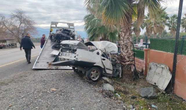 Hatay'ın Erzin ilçesinde ağaca çarparak ikiye bölünen Tofaş otombilin sürücüsü yaralandı. O anlar anbean güvenlik kamerasına yansıdı.Kaza, Erzin-Dörtyol kara yolunda meydana geldi. Kadir E. idaresindeki 31 ANB 208 plakalı Fiat Tofaş marka otomobil, sürücüsünün direksiyon hakimiyetini kaybetmesiyle yol kenarındaki palmiye ağacına çarptı. Çarpmanın şiddetiyle ikiye bölünen araçta sürücü yaralandı. Yaralı sürücü olay yerine gelen ambulansla hastaneye kaldırılırken kaza anı anbean güvenlik kamerasına yansıdı. Kazayla ilgili konuşan Burak Yılmaz, "İçeride temizlik yaparken kaza oldu. Sesi duyduk, yardıma koştuk. Yaralının sağlık durumu iyiydi ama sıkışmıştı, bilinci yerindeydi" dedi.