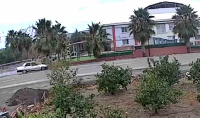 Hatay'ın Erzin ilçesinde ağaca çarparak ikiye bölünen Tofaş otombilin sürücüsü yaralandı. O anlar anbean güvenlik kamerasına yansıdı.