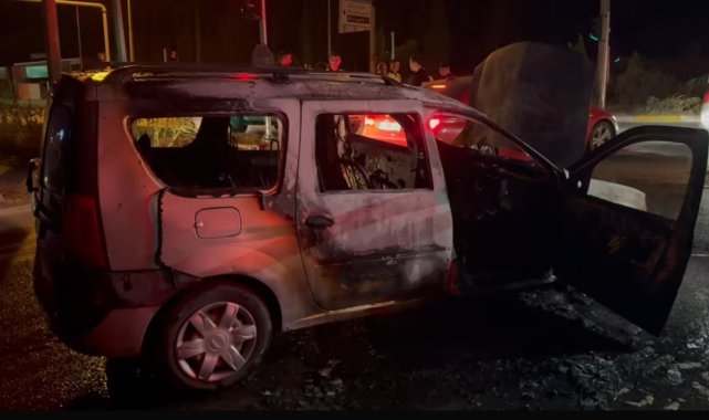 Ağaçlı Kavşağı'nda araç yangını, otombil dakikalar içinde küle döndü