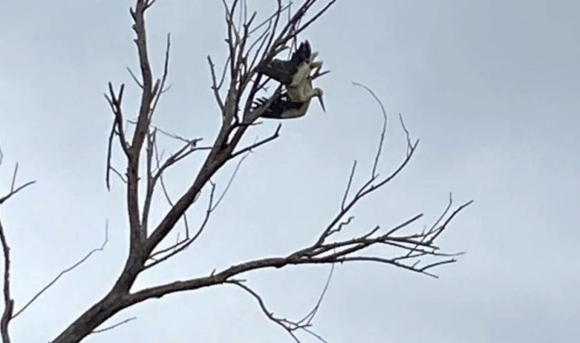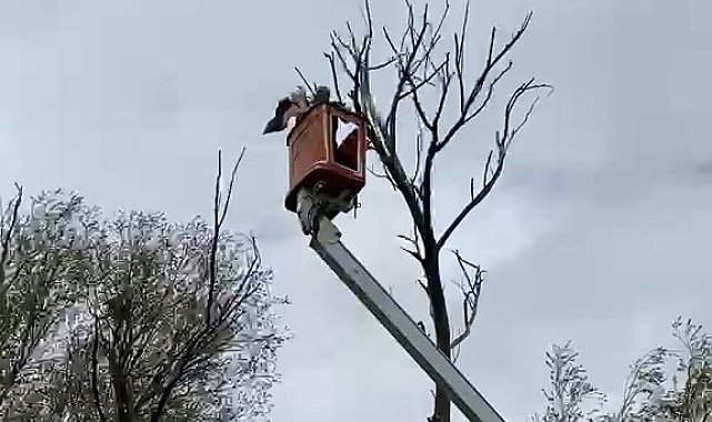 Nevşehir'in Avanos ilçesine bağlı Üçkuyu köyünde ayağı ağaca takılarak mahsur kalan bir leylek, vatandaşların dikkati sayesinde fark edilince adeta seferberlik başlatıldı.Köy kırsalında ağaçta asılı halde çırpınan leyleği gören vatandaşlar durumu hemen yetkililere bildirdi. İhbar üzerine bölgeye gelen MEDAŞ Kalaba ekipleri ile köy halkı, zamanla yarışarak talihsiz hayvanı kurtarmak için harekete geçti. Ekiplerin dikkatli müdahalesi ve köylülerin desteğiyle leylek bulunduğu yerden zarar görmeden indirildi. İlk kontrollerde ayağında kırık olduğu belirlenen leylek, tedavi altına alınmak üzere Üçkuyu köyü muhtarı Ercan Güven aracılığıyla Nevşehir Doğa Koruma ve Milli Parklar Şube Müdürlüğü ekiplerine teslim edildi. Yetkililer, leyleğin gerekli tedavi ve kontrollerinin yapılacağını, iyileşmesinin ardından yeniden doğaya bırakılacağını açıkladı. Köy halkının ve ekiplerin örnek davranışı ise çevrede büyük takdir topladı.